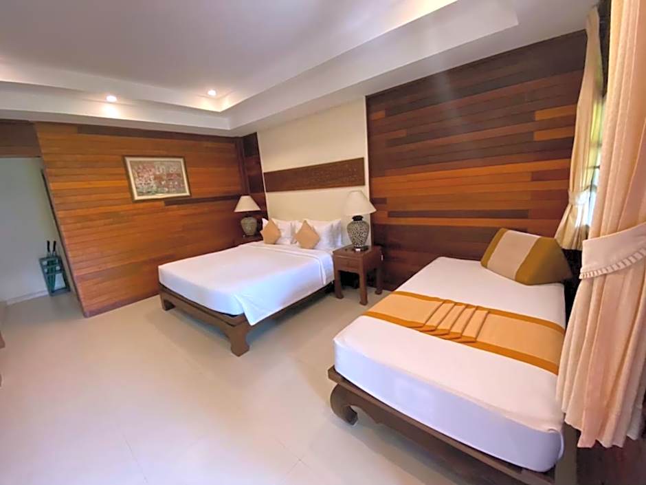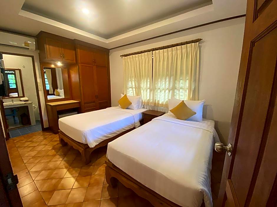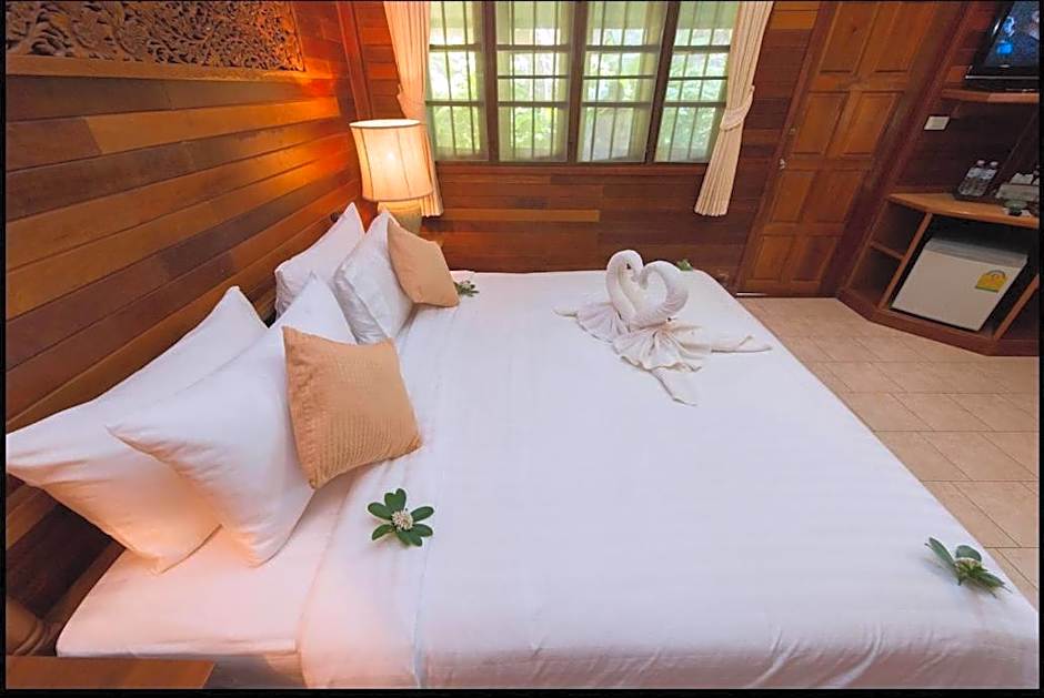 Offering garden views of the backyard, this air-conditioned bungalow features a balcony, a cable TV and a fridge. Free toiletries and a hairdryer are included in its private bathroom.